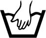 A mosótálban található kézfej egyértelműen jelzi, hogy a textíliával óvatosan kell bánni, mosógépbe nem szabad helyezni (ez alól kivételek azok a mai modern mosógépek melyek már rendelkeznek kézimosás programfunkcióval), s az ábra hivatott jelölni, hogy az anyagot kizárólag kézmeleg vízben (maximum 40 fok) szabad mosni, dörzsölni, öblítéskor kicsavarni pedig szigorúan tilos.
