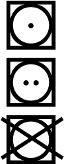 Amennyiben a mosótálba nem kerül szám, pöttyök is jelezhetik, milyen hőmérsékleten szabad mosni az adott ruhaneműt. A három pötty a forró, két pötty a meleg, az egy pötty pedig a hideg víz jele.