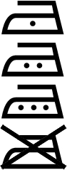 A kis vasaló ikon a textília vasalhatóságát mutatja: ha a vasalót egy x-szel húzták át, az anyagot vasalni szigorúan tilos, ha pedig nincs vasaló ikon a ruhán, akkor egyáltalán nem is kell vasalni.