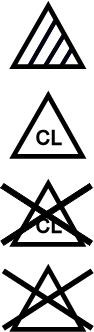 Amennyiben a kör át van húzva, úgy a vegytisztítás nem engedélyezett.